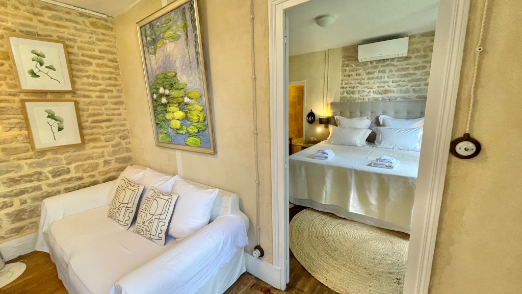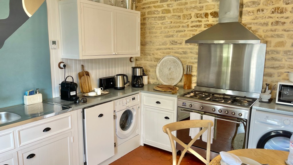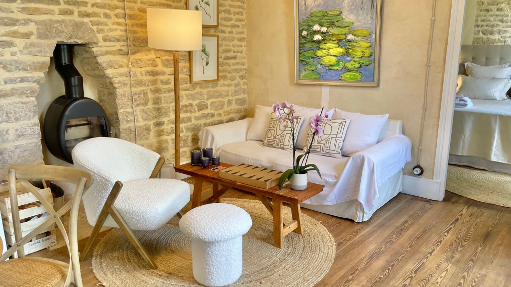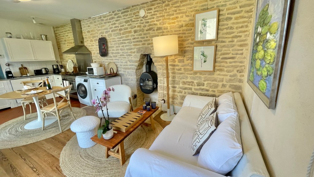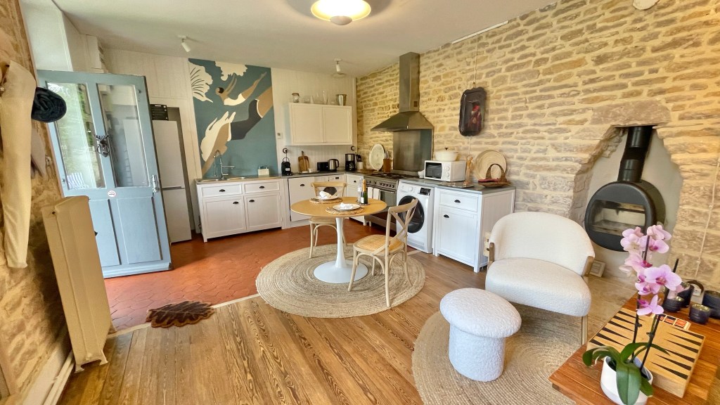 Rare find in Beaune, secluded stone house (55 square meters) with private enclosed garden ( 200 square meters), restored in 2019. You will love the decor of the exposed Burgundy Stone, the collection of artwork, the calm and the comfort. This house has a separate bedroom with king-size bed, quality sheets, ensuite stone bathroom with Bathtub, shower ( fix and flexible), toilet. The large living room with exposed stone walls, bathed in light, opens onto the fully equipped kitchen. The immaculate sofa, filled with cozy cushions and plaids is placed next to the functional and designer wood stove, Danish brand Scan. Firewood provided (1 bundle of logs offered, more at an additional cost on request). The garden is PRIVATE, enclosed by walls (2.20 m high), it is designed as an arboretum where each plant is identified by its name inscribed on a slate plaque. Thyme, Mint, Rosemary, Verbena, fresh herbs for great herbal teas. In spring, bulb flowers will surprise you with their multiple colours. This private outdoor space brings you the much needed oxygen and peacefulness in the city. Relax on the deckchairs, a book in your hand, have lunch in the sun, on the terrace, under the parasol. The location of this house is ideal, quiet, parking is easy and free in the street, grocery store and supermarket 2 minutes walk (grocery store open every day except Monday until 10 p.m. Farmers’ market at 7 minutes by foot, restaurants at 10 minutes by foot, walks in the vineyards at 5 minutes on foot. Internet is Fiber-speed of 300 Mb /s. It is a true HAVEN.